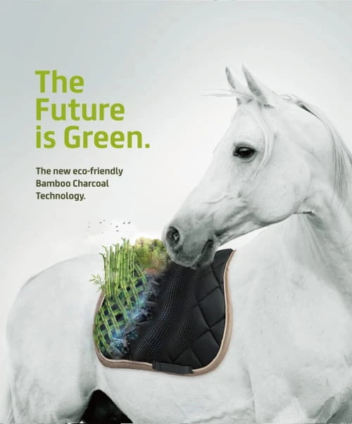 Czaprak pod siodło Lami-Cell wykonany z ekologicznego włókna bambusowego. Wypełniony pianką o wysokiej gęstości 5 mm, wypełnienie 240 g synthermax i wyściółka Eco Bamboo. Wykończony sznurkiem i logo w kształcie podkowy.