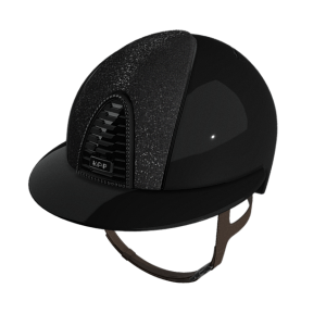 Prezentowany Model Exclusive posiada ramkę wysadzaną czarnymi kryształami, skorupa wykonana z błyszczącej, lakierowanej powłoki polish w kolorze czarnym. Logo z srebrnych cyrkonii. Konfiguracja jest elegancka, subtelna, ale jednocześnie wykwintna, idealnie ozdobi każdą stylizację jeździecką.