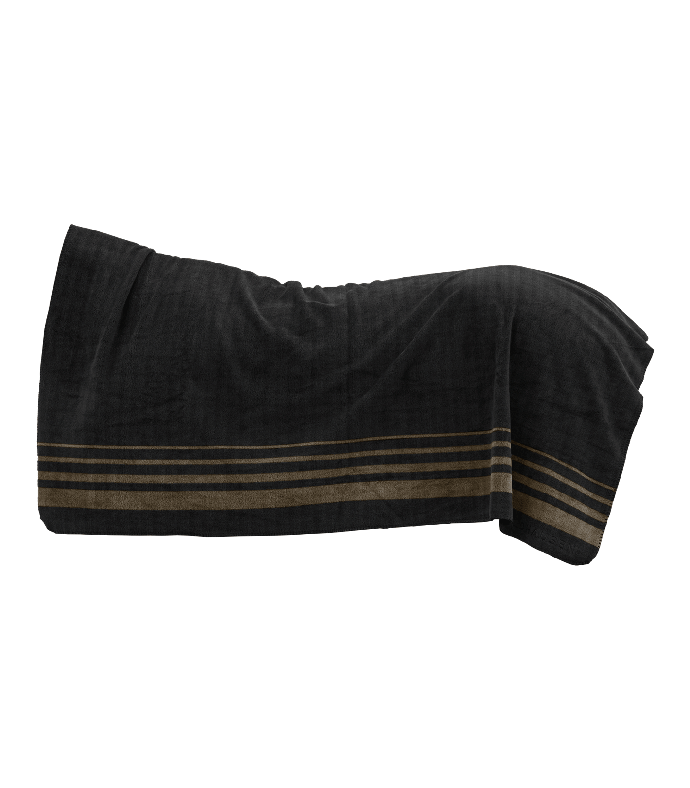 Stylowy koc polarowy Sölden w pięknym czarnym kolorze, ozdobiony zielonymi, pistacjowymi pasami. Gruby materiał (330 g/m²) zapewnia optymalne ciepło dla konia i jeźdźca w chłodne dni. Wymiary: 210 x 200 cm, materiał: 100% poliester