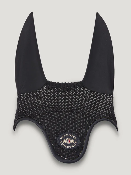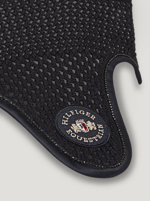 Nauszniki z płaczenia szydełkowego materiału i elastycznych, lekkich uszu. Ozdobione naszywką z logo oraz diamentową lamówką na całym obwodzie,