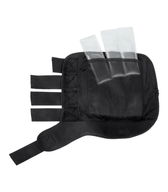 Ochraniacz jest dostarczany w atrakcyjnej izolowanej termicznie torbie, dzięki czemu po schłodzeniu wkładek ochraniacze pozostają długo chłodne podczas drogi do stajni.